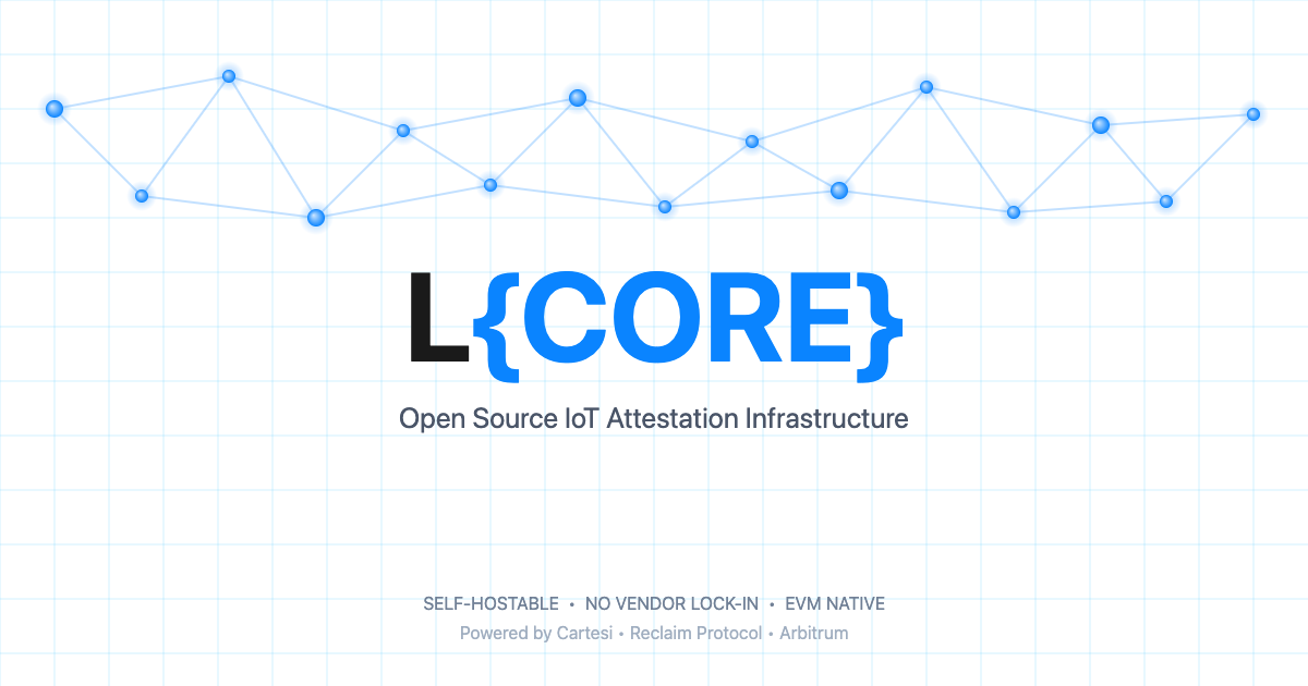 L{CORE} brings cryptographic trust to IoT data. Built on Reclaim Protocol's attestor-core TEE infrastructure, L{CORE} extends their proven attestation technology to embedded devices and sensor networks—enabling verifiable IoT data on any EVM chain.